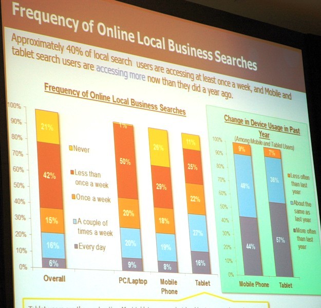 В ходе своего доклада, г-н Стюарт поделился с аудиторией важными данными, собранными в ходе пятого ежегодного исследования регионального поиска «Local Search Study». В исследовании приняли участие 4200 активных пользователей мобильного интернета, а в ходе исследования анализировались как количественные показатели, так и поведение пользователей.
