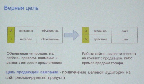 Верная цель ― привести на сайт покупателя. Единственное и главное ― привести человека к описанию товара. Дальше работаю другие вещи: работает предложение, работают продавцы. Реклама свою задачу выполнила.