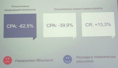 Вывод: ремаркетинг ВКонтакте не сработал, в то время, как реклама в тематических рассылках оказалась эффективной.