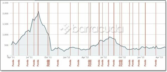 График, приведённый ниже, показывает, с какой периодичностью и силой фильтр Panda наносит удары по сайтам: