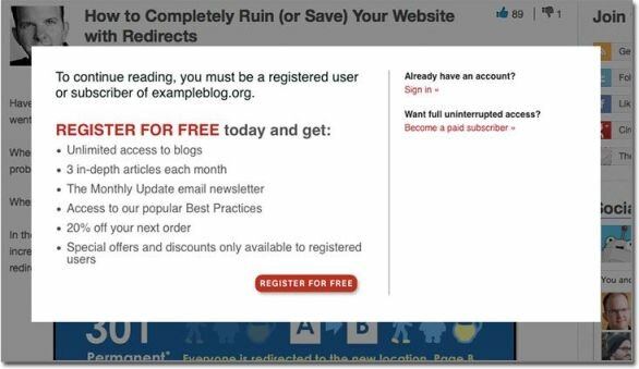 2. Устраняйте барьеры. Юзабилити сайта – еще один значимый фактор, который напрямую сказывается на отношении пользователя к ресурсу. Представьте, что вы пришли на сайт, который «просит» вас пройти регистрацию, прежде чем получить доступ к контенту, фрагменты которого, тем не менее, отображаются в поисковой выдаче. Сегодня такая ситуация все чаще встречается в интернете: