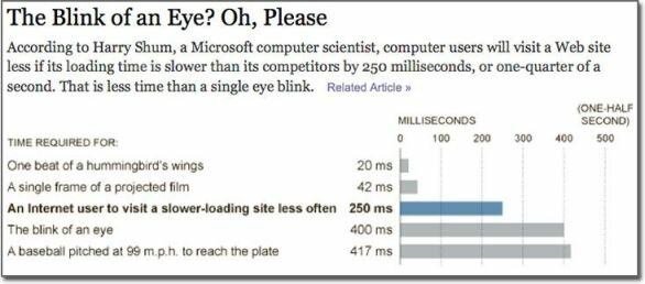 Для справки: ученые из Microsoft установили, что пользователи отдают предпочтение ближайшему конкуренту конкретного сайта, если его страницы загружаются всего на 250 миллисекунд быстрее: