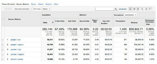 Особенно важен для интернет-магазинов. Он позволяет увидеть не просто процент людей, пришедших по тому или иному запросу и источник, трафик из которого превратился в покупателей. (Например, мы видим, что из Google пришла тысяча человек, из которой 1% стали покупателями — мы получили 10 покупателей.)