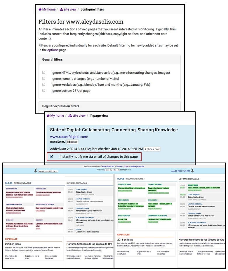 Используйте Versionista или Femtoo для контроля за изменениями ваших и конкурирующих страниц: от прайс-листов на товары и услуги до заголовков и описаний, ссылок и HTML-сниппетов, эти сервисы позволят вам отобрать ключевые фрагменты страниц, об изменении которых вы бы хотели своевременно знать.