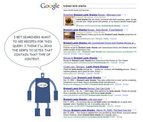 Например, если пользователь запрашивает ключевую фразу [баранья нога], то с точки зрения поисковых систем, уместно будет выдать список сайтов, предлагающий рецепты из бараньей ноги.