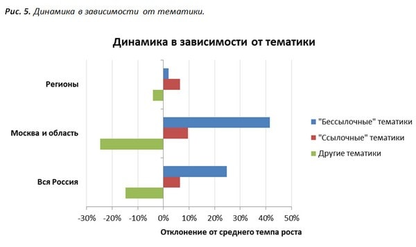 Как можно видеть, сайты в «бессылочных» тематиках растут, но не столь бурно, как в других.