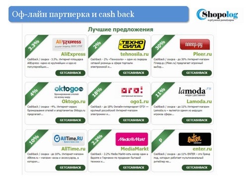 Докладчик также упомянул о cash back – партнёрской оффлайн-программе для привлечения клиентов и повышения их лояльности. Комиссионные аффилиату за отгруженный заказ в этом случае могут составлять 10%.