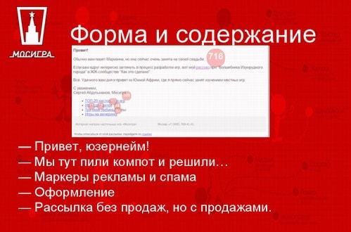 «Важно быть в постоянном диалоге с аудиторией. Полезно ставить отсылки на площадки, где можно обсудить контент письма», – заключил маркетинговый директор «Мосигры».
