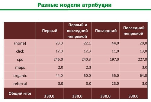 При оценке эффективности различных маркетинговых каналов применялись различные модели атрибуции.
