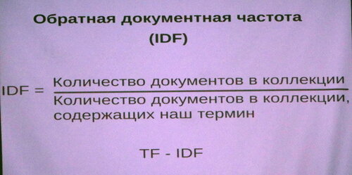 Если же поисковый запрос состоит не из одного слова (к примеру «купить синхрофазотрон»), то анализ проводится следующим образом. Есть два текста: Текст А, где слово «купить» употребляется 5 раз, но при этом слова «синхрофазотрон» нет, и Текст В, где отсутствует слово «купить», но слово «синхрофазотрон» используется 5 раз. С точки зрения поискового алгоритма оба текста частично релевантны. В данном случае для определения степени релевантности будет применяться формула Обратной документной частоты: