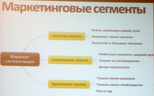 Поэтому Антон Ермоленко предлагает подумать о маркетинговых сегментах. Существует 9 сегментов, и с каждым из них понятно, как работать: