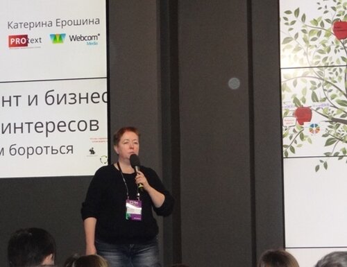 На втором дне конференции в рамках секции «Внутренняя оптимизация сайта, фокус на коммерческие факторы» доклад на тему «SEO-контент и бизнес-цели: как решить конфликт интересов?» Екатерина Ерошина (Протекст, группа компаний Webcom Media).
