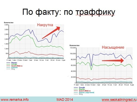 Таким образом, можно сделать вывод, что истинная потребность рынка – в накрутке показателей, а вебстудиями востребованы специалисты со знаниями в области накрутки. Основными инструментами накрутки, как известно, являются: плотность ключевых фраз в тексте; выделение фраз, скрытие лишнего – на грани фола (клоакинг и т.п.); ссылочный спам: биржи ссылок, каталоги, профили на форумах, спам в социальной сети и т.д.; накрутка поведенческих факторов.