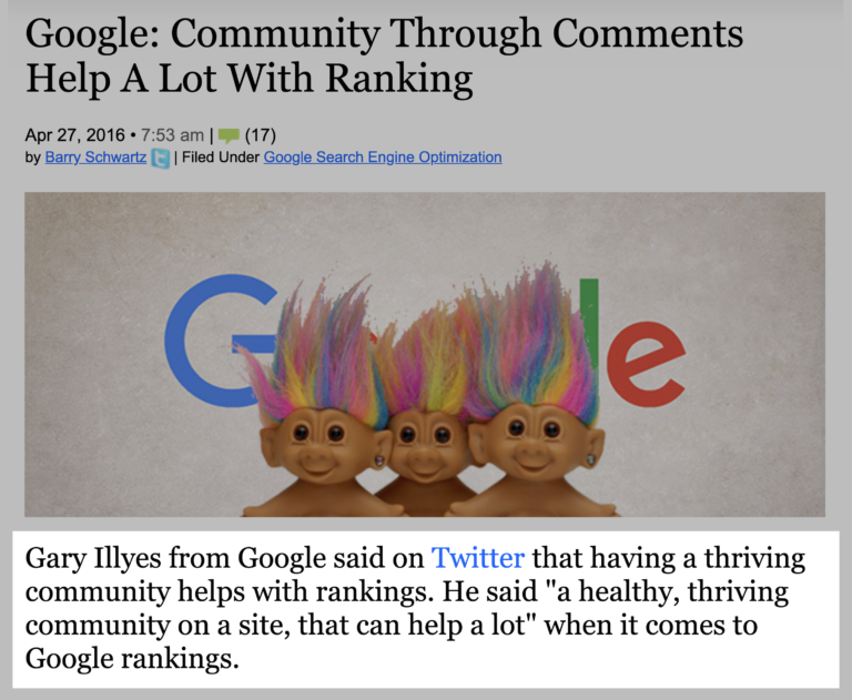 - Комментарии дают пользователям больше материала для чтения и действий, что может улучшить такой показатель, как dwell time.