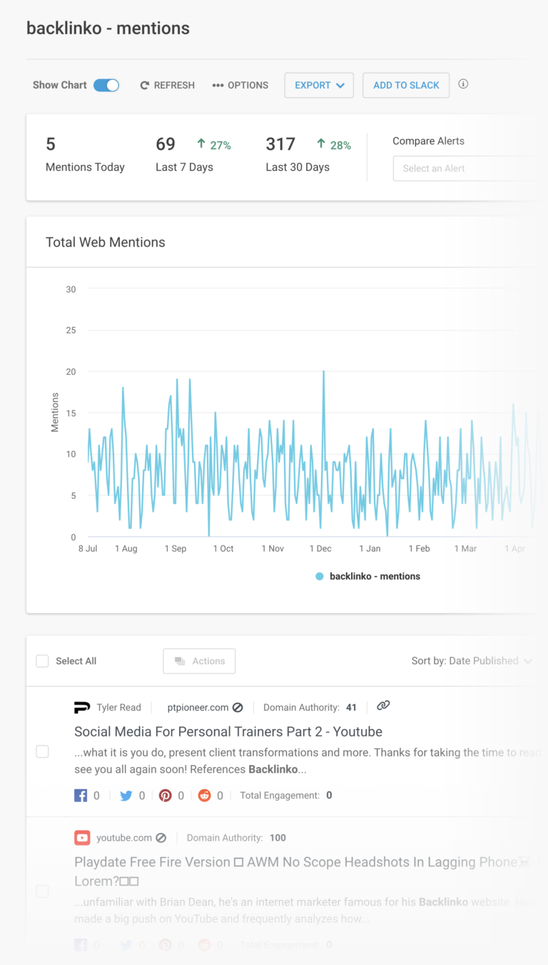 Для поиска таких упоминаний можно использовать функцию «Brand Alerts» в BuzzSumo: