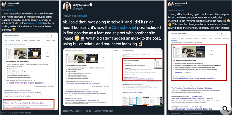 Например, оптимизация статьи о работе из дома «Work from Home Checklist» заняла всего несколько часов.