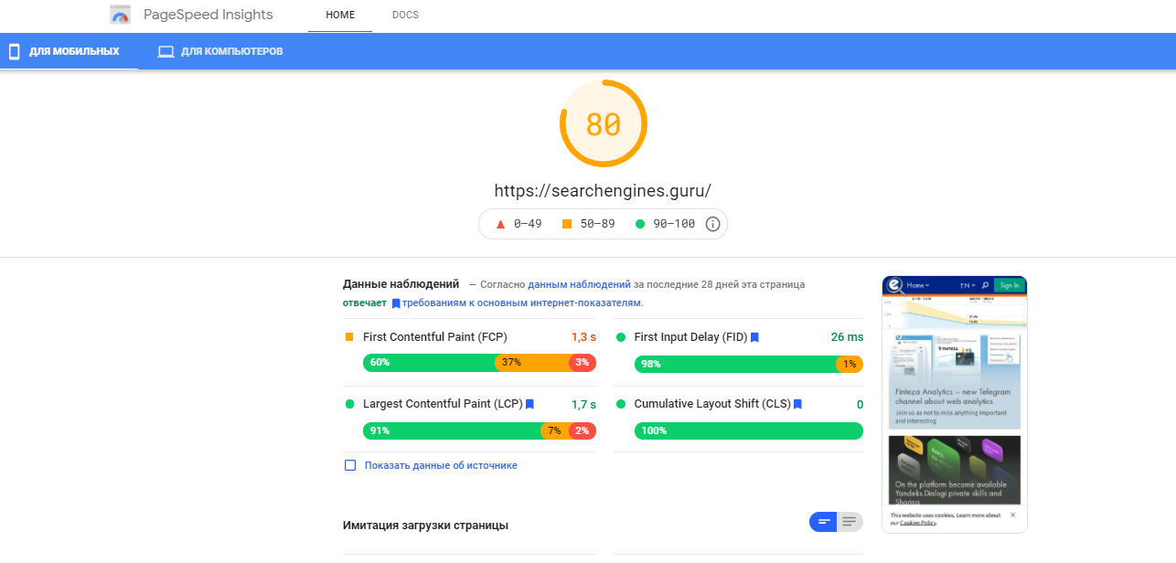 Например, это можно сделать с помощью инструмента PageSpeed Insights или отчета Lighthouse в аналитическом сервисе Finteza.