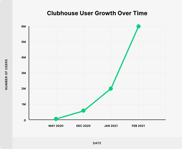 Clubhouse был запущен в апреле 2020 года, а к концу года насчитывал более 600 000 зарегистрированных пользователей, несмотря на отсутствие версии для Android и сайта.