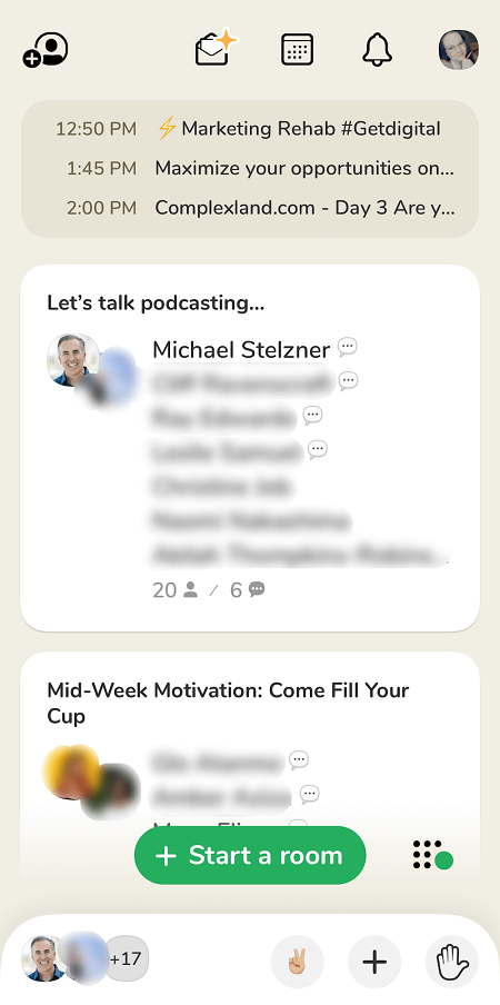 Чтобы набрать подписчиков, входите в комнаты, которые имеют отношение к вашей сфере деятельности, и знакомьтесь с людьми, которые их регулярно посещают. Если будете часто появляться и активно участвовать в обсуждениях, управляющие комнатами могут пригласить вас выйти на сцену, где вас заметит публика. Чем больше времени вы проведете на сцене, тем больше подписчиков привлечете.