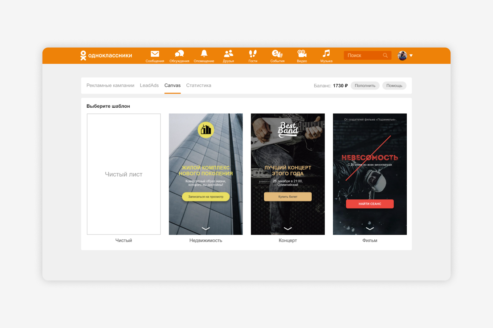 Для всех пользователей Одноклассников стали доступны форматы Lead Ads и Canvas