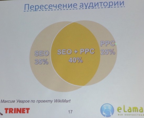 Довольно интересными оказались наблюдения исследователей, касающиеся пересечения пользовательской аудитории, переходящей на сайт по объявлениям контекстной рекламы и из платной выдачи.