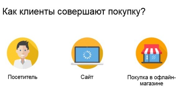 Третий вариант: посетитель приходит на сайт, но покупает товар в оффлайн-магазине: