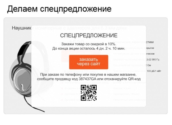 - Бывает, что клиент приходит в оффлайн-магазин, на месте заходит на сайт и видит спецпредложение. В итоге он приобретает товар со скидкой на сайте.