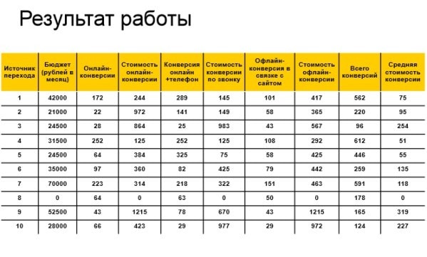 Таблица позволяет проанализировать трафик и подсчитать стоимость каждого канала и конверсии: