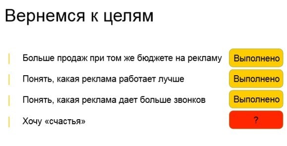 Под «Счастьем» понимается требование: «Дайте мне больше потенциальных клиентов!» Вместо этого в бизнес сталкивается с тем, что проведенный анализ оголяет проблемы не в части рекламы, а в части самого бизнеса.