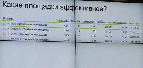 Возможности отчёта также позволяют выявить наиболее и наименее эффективные рекламные площадки: