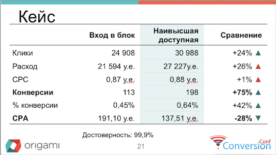 В рамках ConversionConf Елена Фирсова, директор по продукту Origami, представила доклад на тему: «Шахматное тестирование стратегий управления ставками».