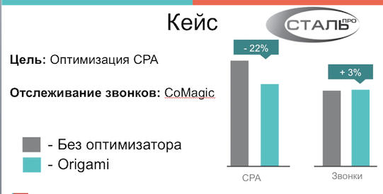 По словам докладчицы, сегодня тесты, проведённые платформой Origami, явно свидетельствуют о том, что от 20% до 50% рекламных бюджетов расходуются неэффективно. При этом бюджет на рекламу расходуется ежемесячно. Таким образом, компании, которые не используют системы автоматизации, регулярно «сливают» бюджеты впустую.