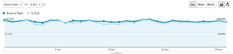 Таким образом можно получить график сравнения показателей отказов и выходов для всех страниц ресурса и, при желании, для каждой из них по отдельности: