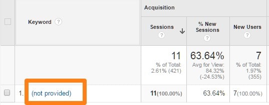 Получение органического трафика из Google – это хорошо. Однако есть один существенный минус: с тех пор, как Google начал шифровать поисковые запросы, отчёт по органическим ключевым словам в большинстве случаев выглядит так: