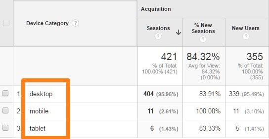 Данные отчёта можно сегментировать, чтобы посмотреть, какие мобильные устройства/браузеры используются для доступа к сайту. Таким образом также можно выяснить, на каких устройствах показатели эффективности сайта ниже.