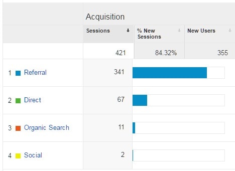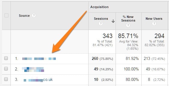 С помощью вкладки «Referrals» (Источники трафика -> Обзор -> Весь трафик ->Referrals) можно узнать, с каких внешних ресурсов поступает трафик на сайт: