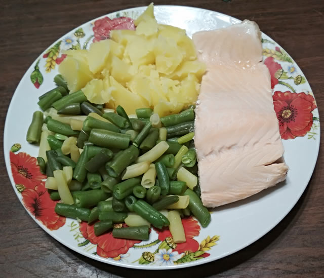 А у нас что поймал то и съел - судак, картошка и типа салат