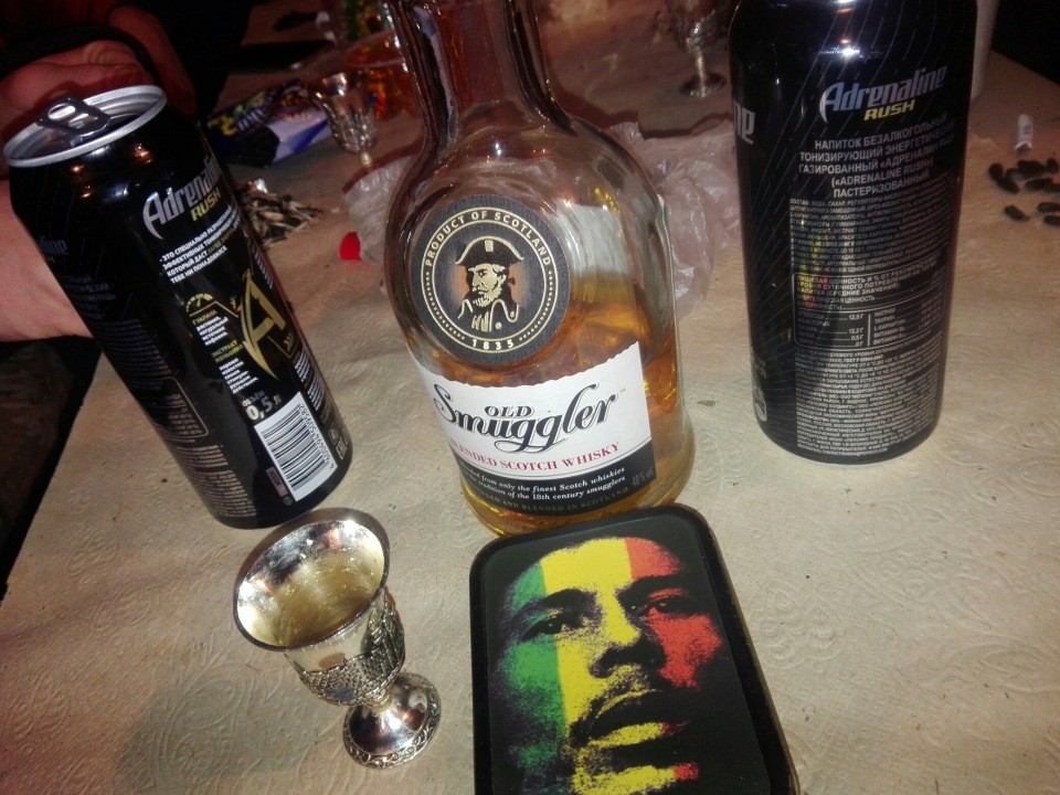 Вчера две бутылки убацали + шлифанули пивком и сидорком