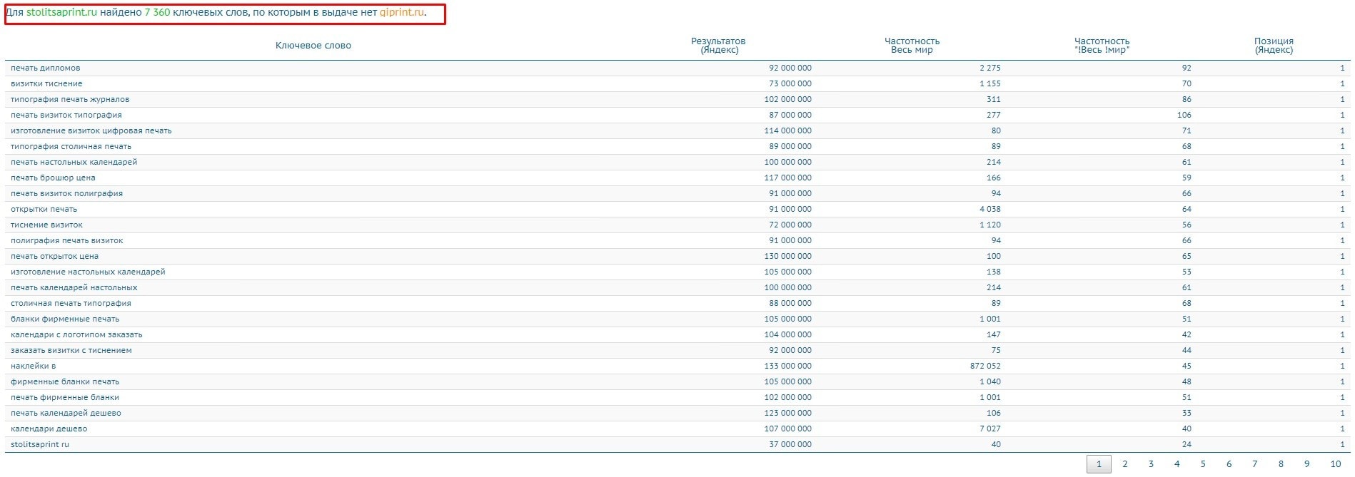 1. Заходим по этой ссылке, там один из лучших конкурентов Ваших https://www.bukvarix.com/cmp/?q=https%3A%2F%2Fgiprint.ru%2F&q2=https%3A%2F%2Fstolitsaprint.ru®ion=msk