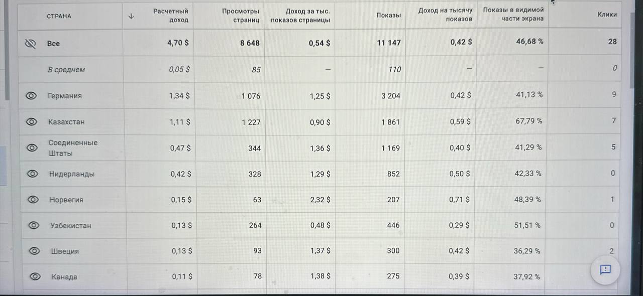 Всего 28 кликов при 11147 показах? Посмотрите в личном кабинете, что за рекламные объявления показываются вашим посетителям. При таких показах должно быть раз в 5 больше кликов.