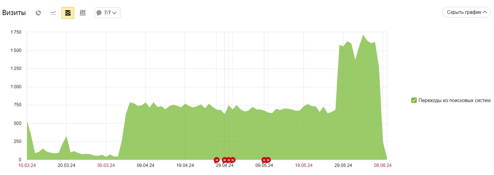 странность заключается в том, что он сам по себе набрал трафика, потом обвалился, потом снова набрал трафика, потом еще больше набрал трафика с 28 мая, вчера ни с того ни с сего обвалился. Без каких-либо предупреждений.