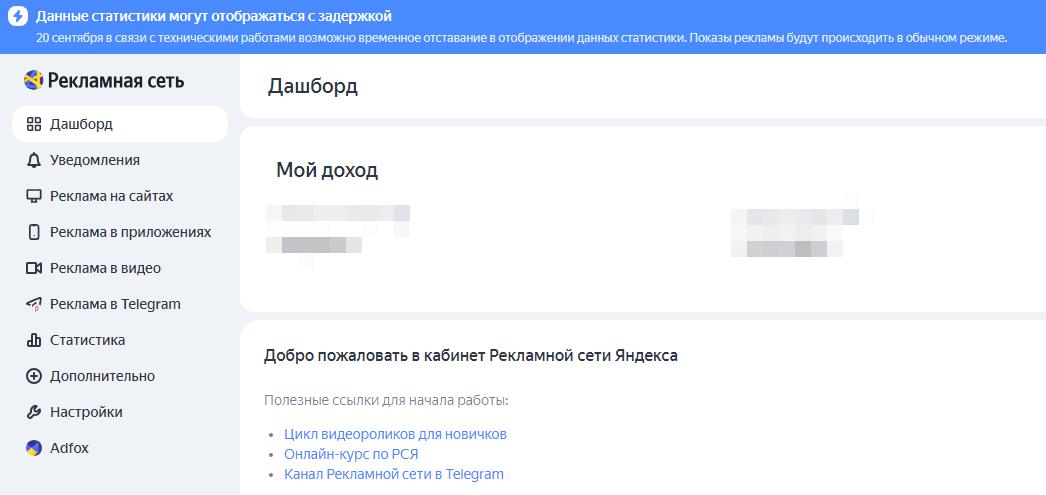 Постоянные простои на протяжении 9 месяцев, мутное формирование выплат! Вишенка на торте, которая венчает отношение к вебмастерам (своим партнерам) - плашка, которая висит уже 3 дня и рассказывает нам о том, что за 20 СЕНТЯБРЯ статистика идет с задержкой (напомню, сегодня 22 сентября. Возможно они решили оставить ее на регулярной основе, но хотя бы потрудились менять дату). Я не утверждаю, что РСЯ нас обманывает, но политика молчания, которой придерживается компания, выглядит крайне непорядочно!