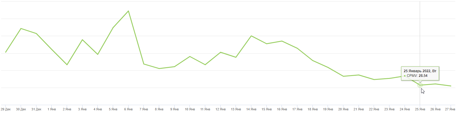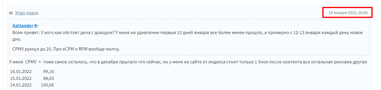 У меня 1 блок только на сайте до 16 января хотябы скакал CPMV, а с 16 числа только падает