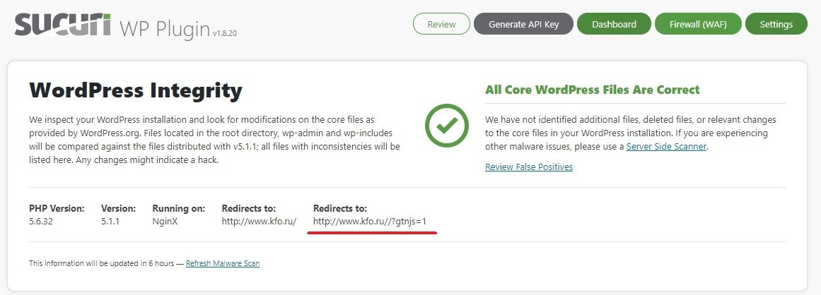 Захожу в Sucuri Security, обнаружил два файла непонятных, типпо ничего не значимых , обнаружил изменение в WP , всё исправил, и теперь меня смущает одна надпись во втором поле редирект данного плагина(см. приложение)