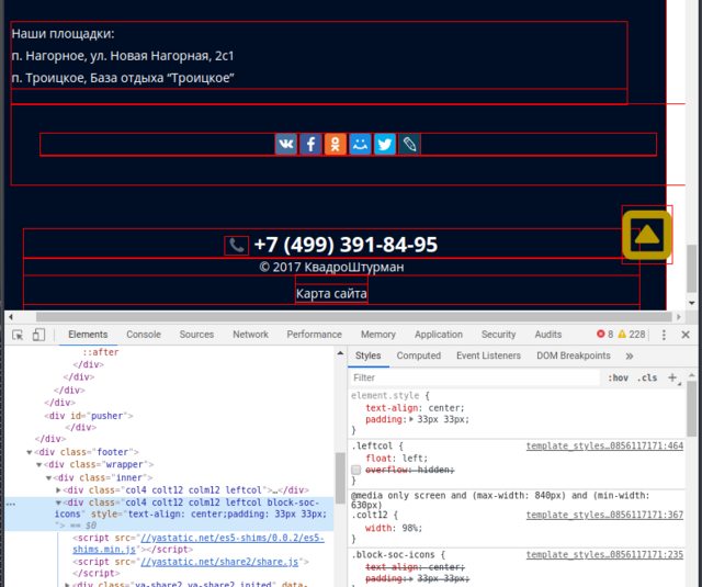 Подскажите, не могу отловить горизонтальный скролл на сайте http://kvadroshturman.ru/.