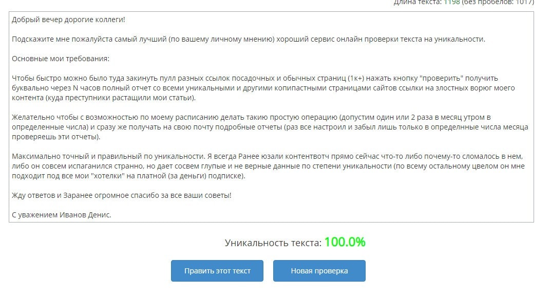 Подскажите пожалуйста лучший (по вашему мнению) сервис онлайн проверки уникальности.