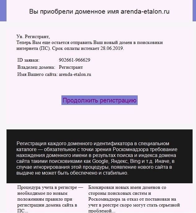 И вдруг приходит письмо от "Доменного регистратора" с темой "Необходимо закончить регистрацию домена" и счетом на оплату https://subme.su/?domain=arenda-etalon.ru :eek: