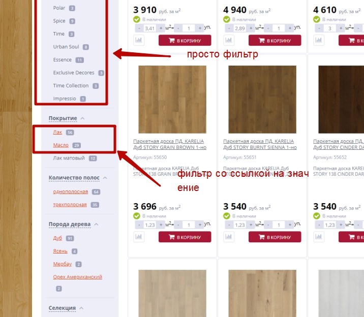 Линковать: ну либо из свойств товара, либо в разделе - прямо из фильтра: