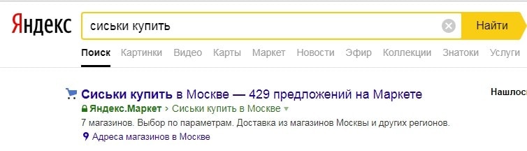 Ну ни ДП, ни сисек, ни героина на маркете нет по факту. За что надавать - за нерелевантую выдачу? Хорошо бы, но такого закона нет.