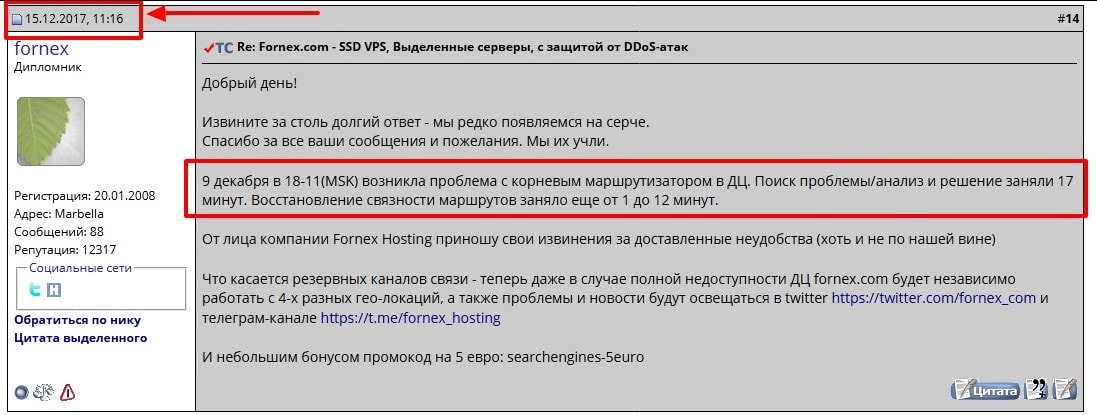 maxim2501, в прошлый раз, не помню когда на самом дешевом тарифе, дали месяц хостинга бесплатно, но щас у меня сервер в Германии лежит. В любом случае fornex обычно компенсируют, так что подождем...